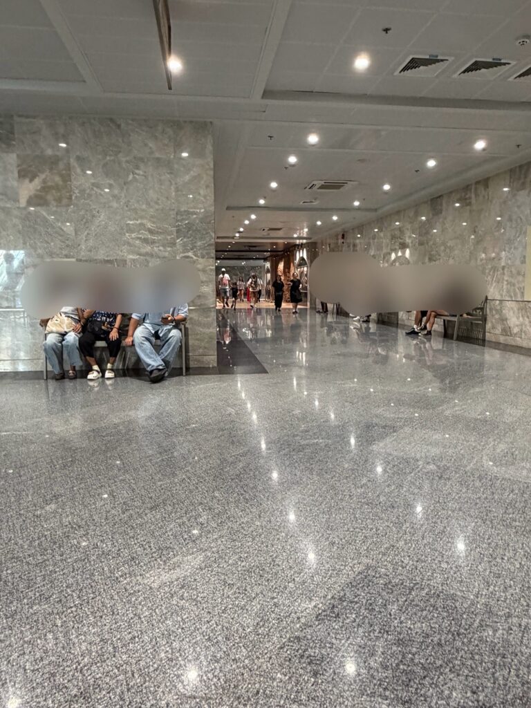 通路内は明るく清潔で、管備員の方もいっしゃるので、治安はそこまで悪くなく、安心して過ごすことができますよ!