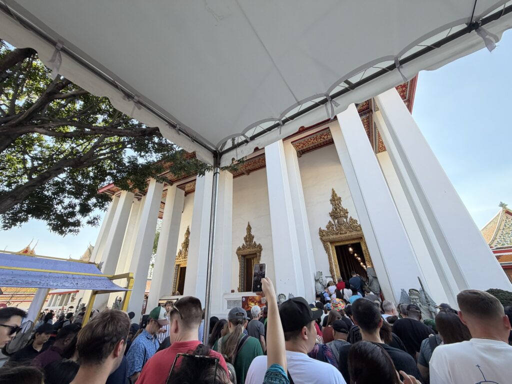 王宮に比べると、敷地はそこまで広くなく、みなさん目的の涅槃像の建物に入るために並んでいるので、並んでみましよう!