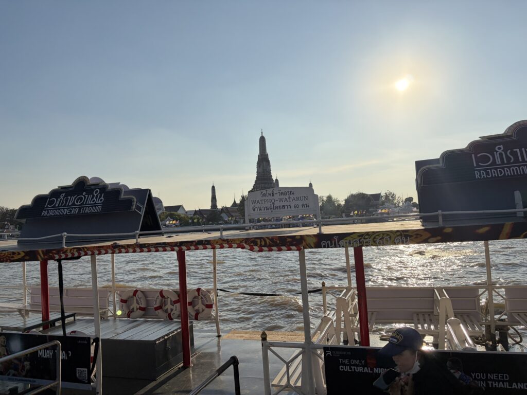 茶色いチャオプラヤ川をはさんで、対岸には立派なワット・アルンが見えます!!
