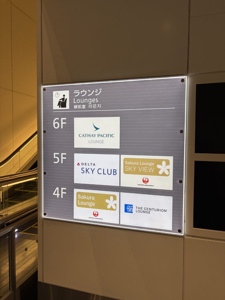 サクララウンジと同様、114番搭乗口周辺のエスカレーターをのぼり、6階にあります!
