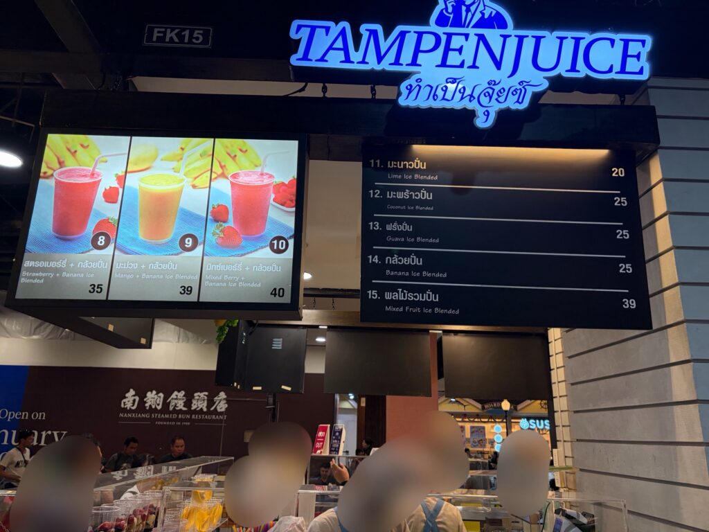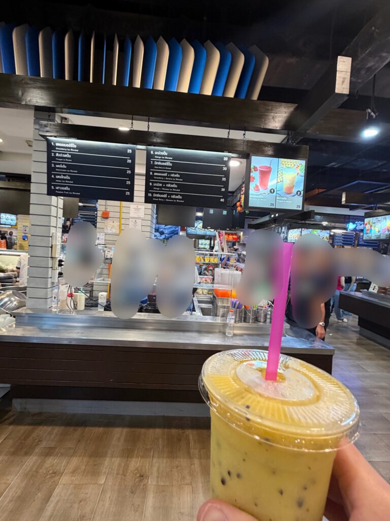 私は毎日フルーツジュースを頼みました。(30〜40THB前後とコスパ抜群でおいしかったです!)