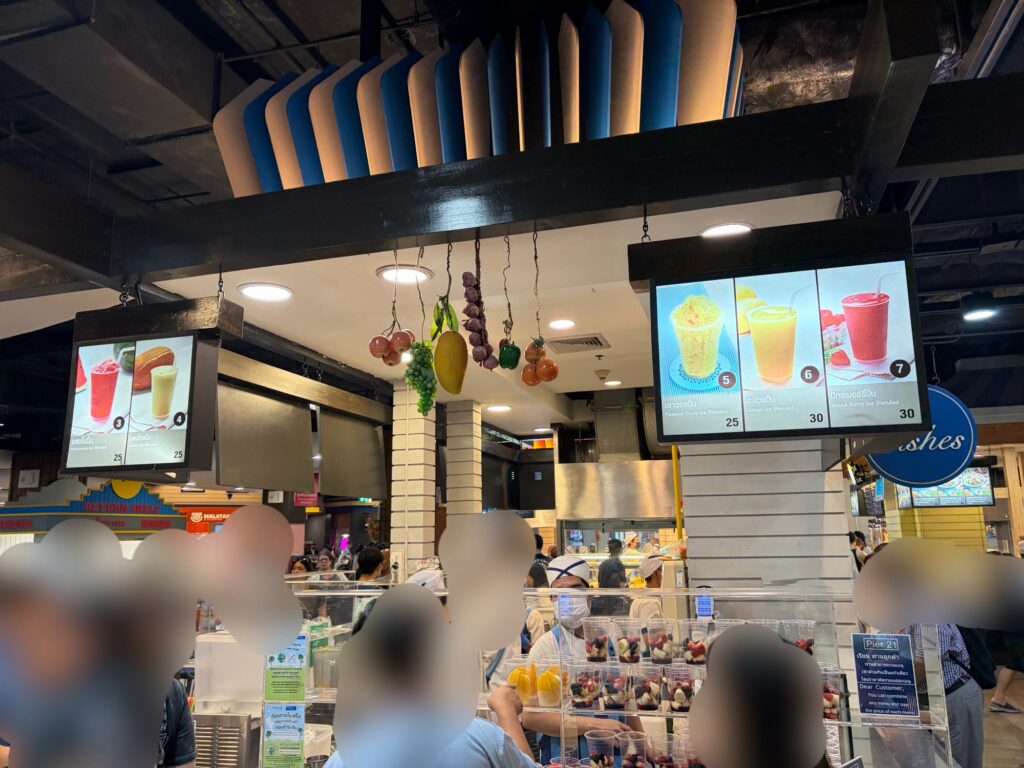 チャージができたら、お店をまわってみましょう!カオマンガイやトムヤムクンなどタイ料理はもちろん、中華料理や韓国料理、ベトナム料理、カットフルーツやフルーツジュースなどバラエティに富んだ料理があります!